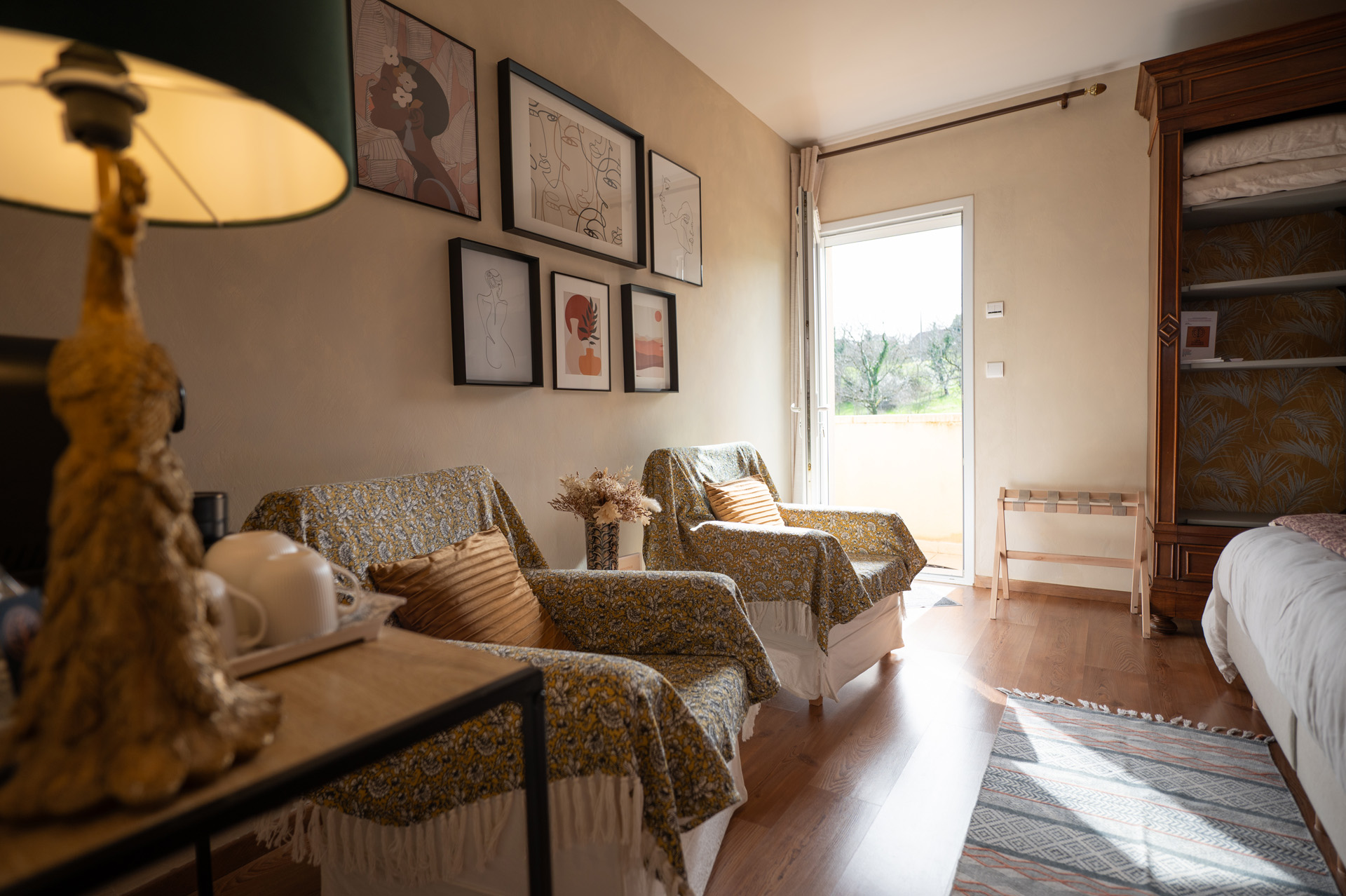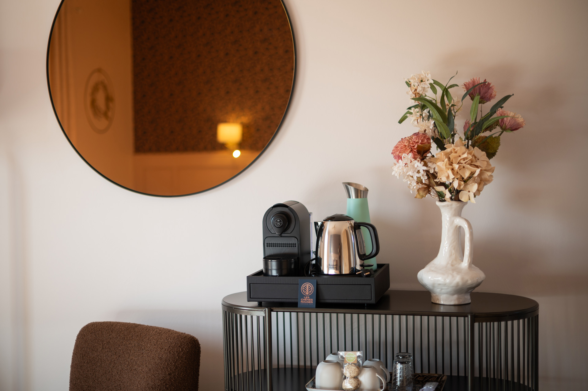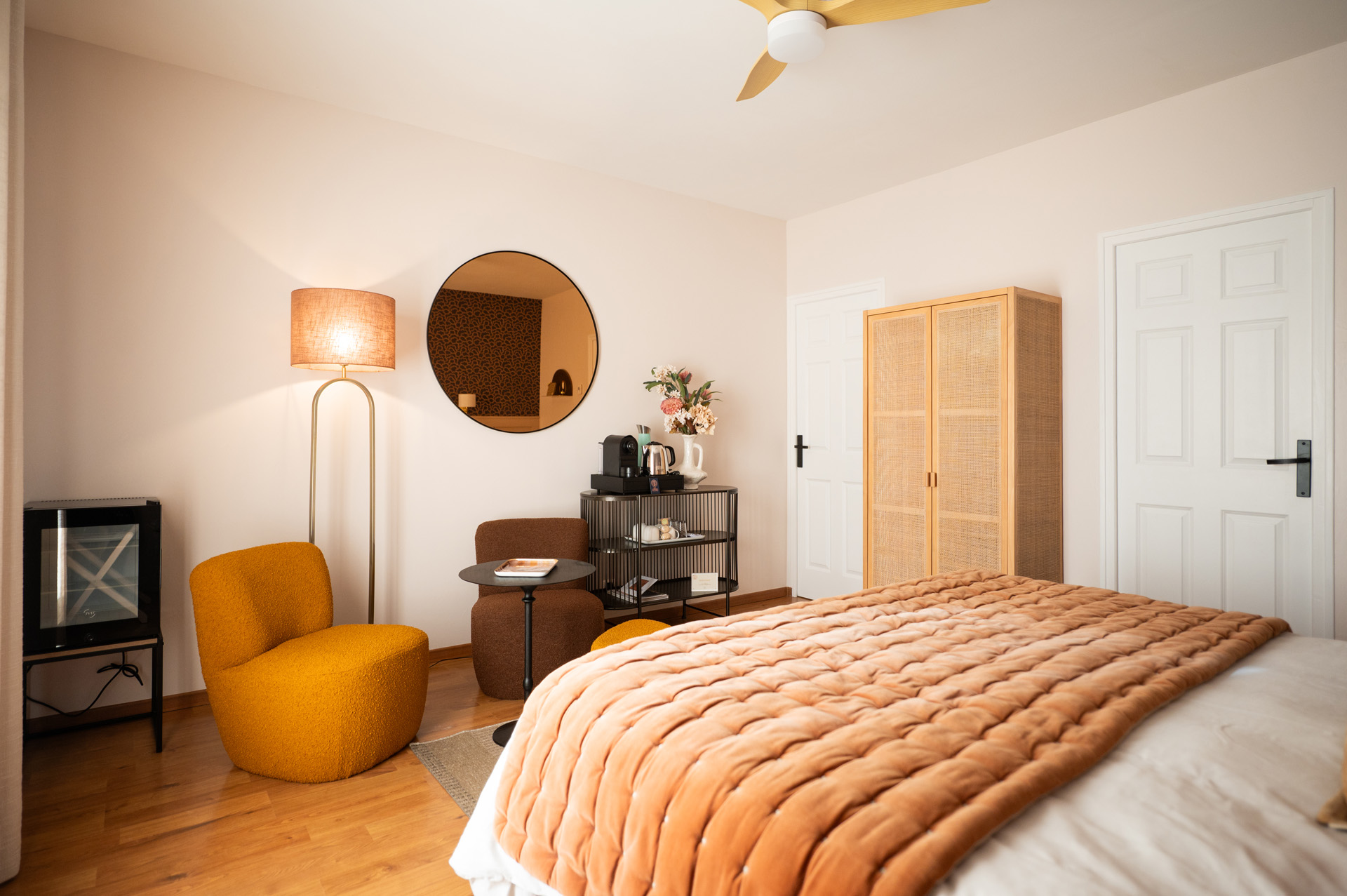 Venez goûter à son ambiance campagne chic, douce et reposante. Les couleurs dans les tons beige & crème se mêlent parfaitement au charme de l’ancien. Profitez d’une vue sur le Jardin.